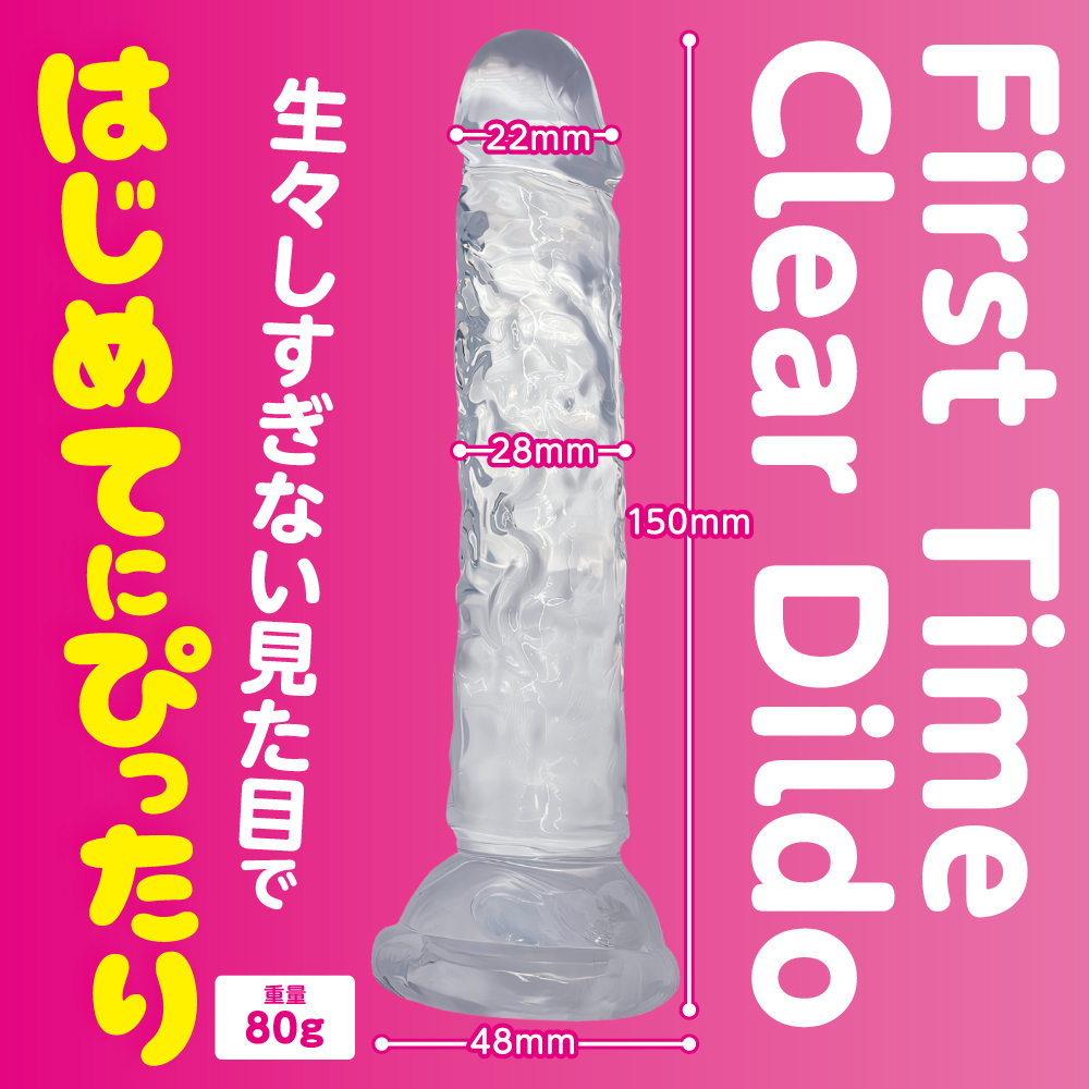 初心者でも安心して使えるSサイズクリアディルド。 吸盤で壁や床に固定すればフリーハンドで使用可能。 初めてでも安心の、スタンダード形状のクリアディルド。 挿入部130mm、最大幅28mmと、日本人男性の平均に合わせた使いやすいサイズ感。 根元の吸盤で床や壁に固定すれば、手を使わずに様々な体勢で楽しめます。 小ぶりなサイズでも適度に施されたデコボコがしっかり刺激を生み出します。 色・フォルムともに生々しさを抑えたディルドです。