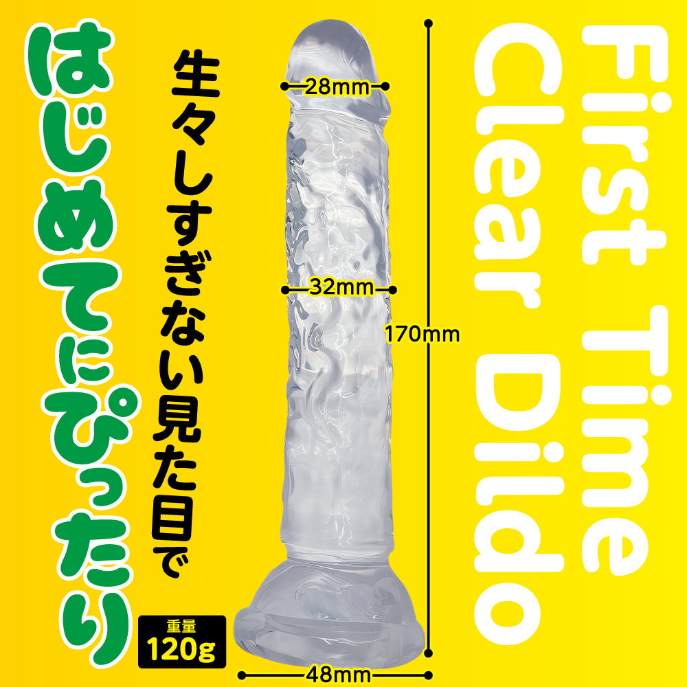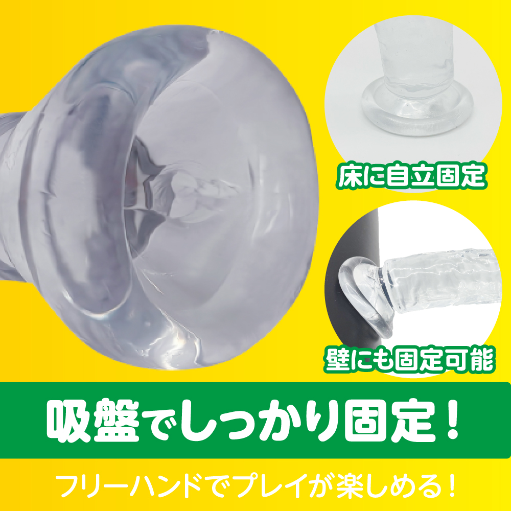 初心者でも安心して使えるMサイズクリアディルド。 吸盤で壁や床に固定すればフリーハンドで使用可能。 初めてでも安心の、スタンダード形状のクリアディルド。 挿入部145mm、最大幅32mmと、日本人平均より少し大きめの満足感のあるサイズ。 根元の吸盤で床や壁に固定すれば、手を使わずに様々な体勢で楽しめます。 小ぶりなサイズでも適度に施されたデコボコがしっかり刺激を生み出します。 色・フォルムともに生々しさを抑えた初心者向けディルドです。