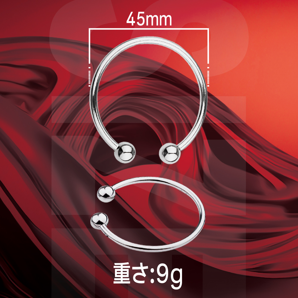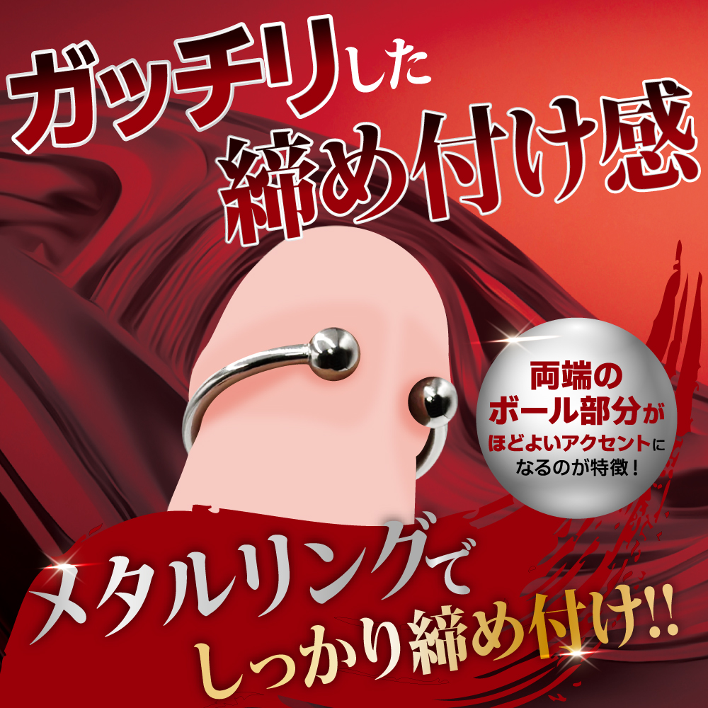 男らしさを強化したいときのメタル製コックリング。 しっかり締め付けて元気と長持ちをサポート。 男性の元気と持続力を支えるメタルコックリング。 血流を抑えこみ勃起力を強力サポート、楽しい時間をより長く楽しめるアイテムです。 メタルリングならではの伸び縮みしない強力な締め付けを体験できます。 高いホールド性能を備え、先端、中間、根元とどこに装着してもずれにくく快適に使用できます。 また、C型形状の両端に付いたボールがアクセントになり、プレイ中の興奮を増幅します。