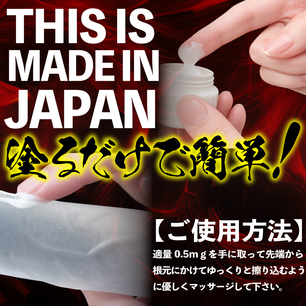 いつもより元気になりたいときにサッとひと塗り! パワフルな有効成分複数配合のエナジークリーム。 男性の自信を取り戻すサポートクリーム。 豚、馬、マムシ、すっぽんなどの伝統的な動物由来エキスに加え、オタネニンジン根エキス、アルギニン、グルコン酸亜鉛、マンダリンオレンジ果皮エキスなど、血流促進に着目した成分を贅沢に配合した温感×冷感W処方男性サポートクリームに、ビタミンPとも呼ばれるグルコシルヘスベリジン、またヨモギ葉エキス、コショウ果実油を配合しました。循環サポートを強化するとともに、温感の持続性やスパイシーな刺激感をプラスし、より力強く実感できるクリームです。