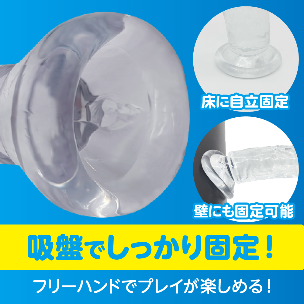 初心者でも安心して使えるLサイズクリアディルド。 吸盤で壁や床に固定すればフリーハンドで使用可能。 初めてでも安心の、スタンダード形状のクリアディルド。 挿入部160mm、最大幅34mmと、奥まで届かせてしっかりした存在感を楽しめるロングサイズ。 根元の吸盤で床や壁に固定すれば、手を使わずに様々な体勢で楽しめます。 小ぶりなサイズでも適度に施されたデコボコがしっかり刺激を生み出します。 色・フォルムともに生々しさを抑えた初心者向けディルドです。
